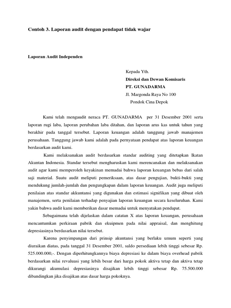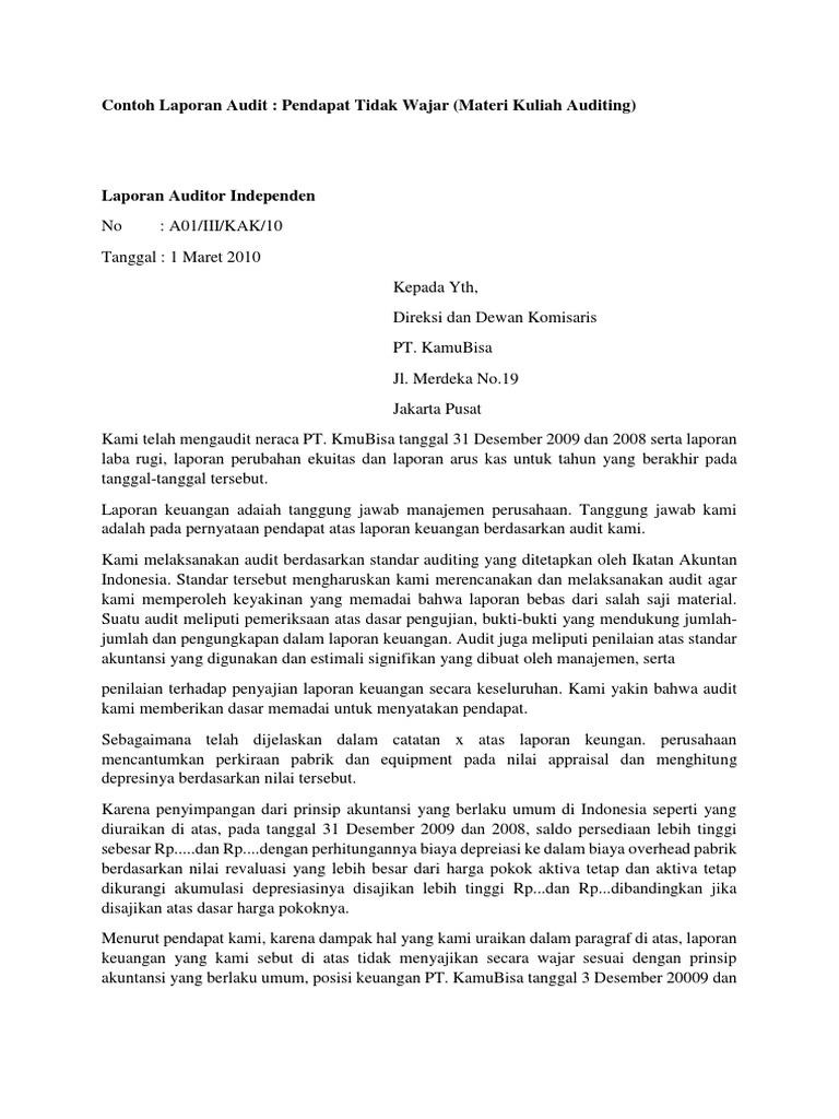 Contoh Laporan Audit Tidak Wajar Pdf